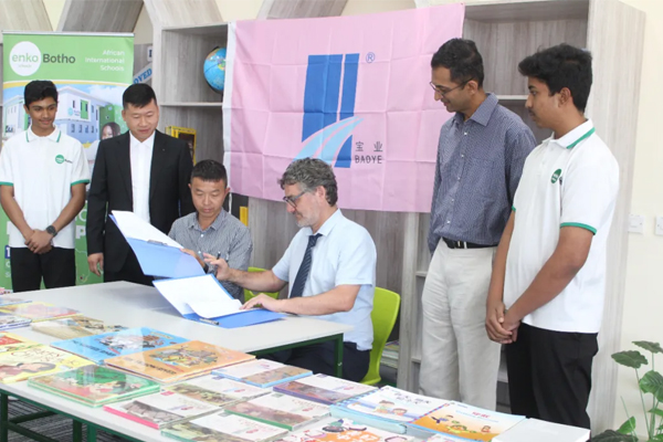 11月26日,在博茨瓦纳BOTHO ENKO小学校区内,由宝业湖北建工集团主办的图书捐赠仪式成功举行。Botho集团董事Ananth Raja Ram先生与ENKO学校校长Vicent先生共同出席仪式,并对宝业集团长期支持当地教育发展表示衷心感谢。