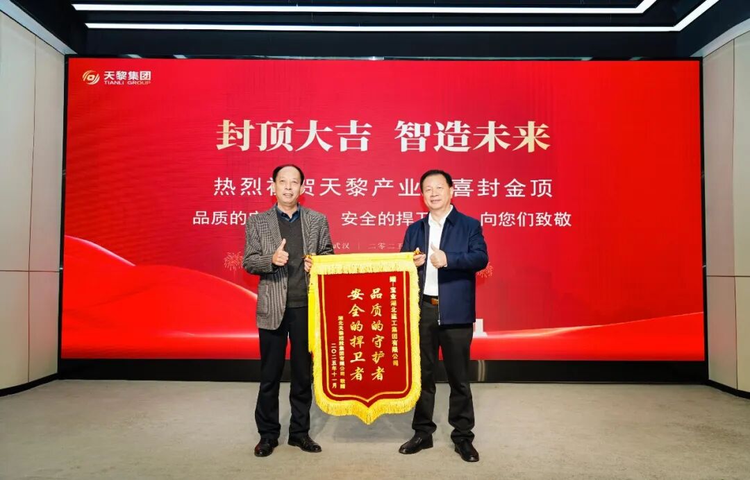 随后召开的项目建设座谈会,项目经理廖红军系统汇报了当前工程进展与后续施工计划,并对建设各方给予的支持表示衷心感谢。会上,天黎集团向宝业湖北建工集团授予“品质的守护者,安全的捍卫者”荣誉锦旗,这面锦旗不仅承载着业主的充分肯定,更是对宝业始终坚持精益建造、严守安全底线的生动褒奖,宝业团队将继续秉持匠心,务实功坚,稳步推动项目从结构封顶迈向全面竣工,致力于将本项目打造为功能完善、品质卓越的产业标杆,为区域产业升级贡献宝业力量!